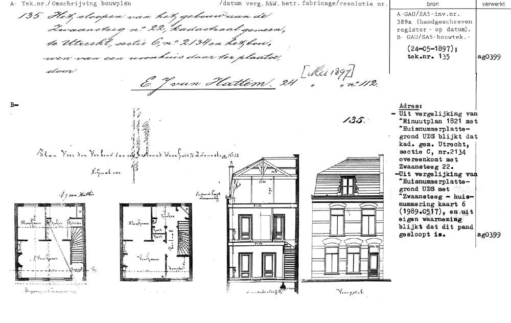 Utrecht - Zwaansteeg 22 - gesloopt 1980 - oud adres