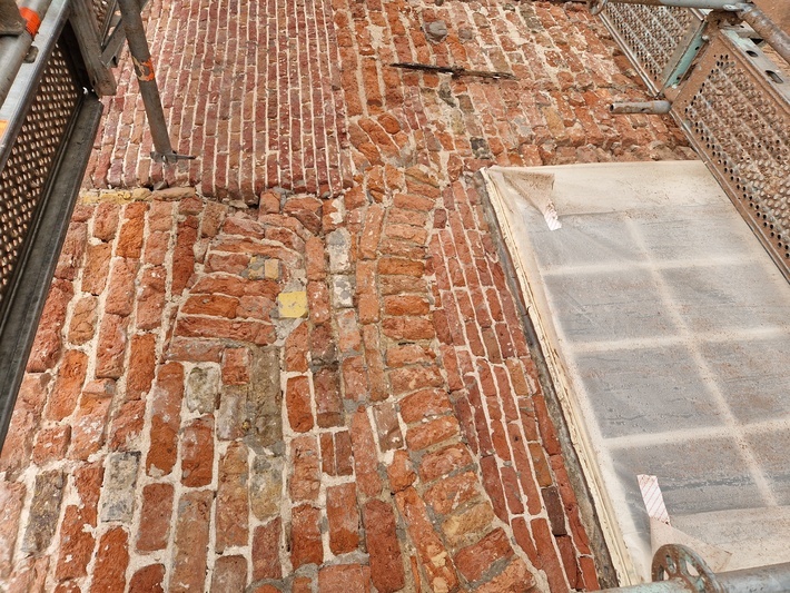 opmerkingen : Utrecht - Springweg 116. Het restant van de bovenste boog toont de plaats van de oude achterpoort van het Reguierenklooster. Van de rechter dagkant is onderaan het onderste duimblok bewaard gebleven, KLIK hier. Het restant van de onderste boog hoort bij de nisvormige ontlasting van het rond 1583 in de voormalige poortdoorgang geplaatste venster.