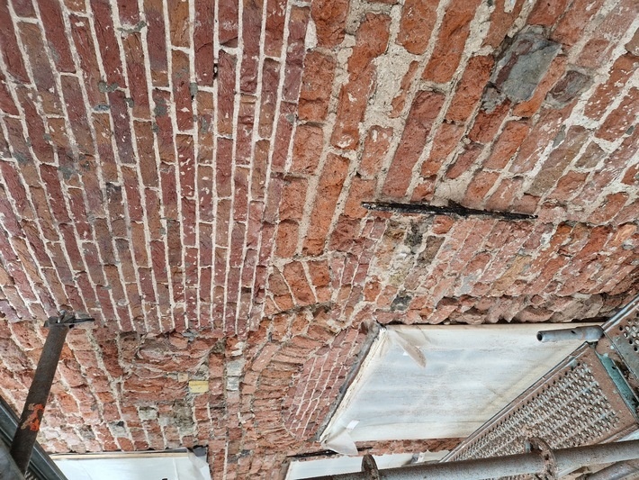 opmerkingen : Utrecht - Springweg 116. Het restant van de bovenste boog toont de plaats van de oude achterpoort van het Reguierenklooster. Van de rechter dagkant is onderaan het onderste duimblok bewaard gebleven, KLIK hier. Het restant van de onderste boog hoort bij de nisvormige ontlasting van het rond 1583 in de voormalige poortdoorgang geplaatste venster.
