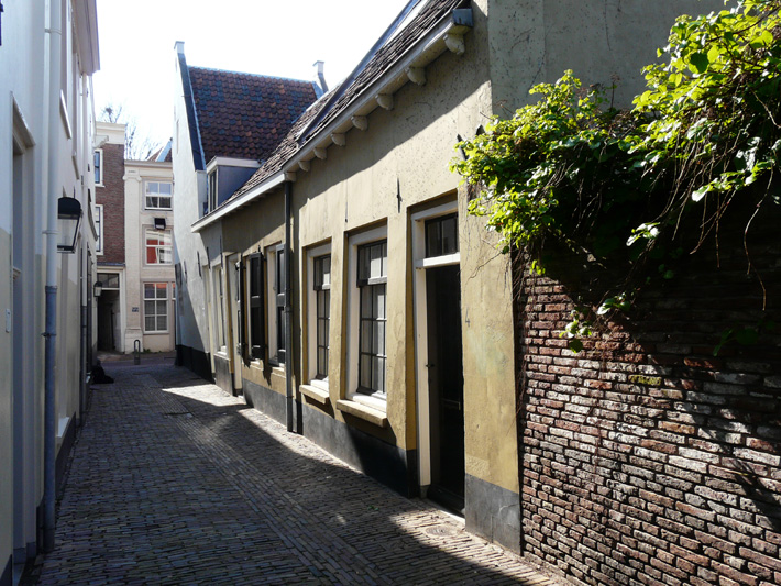 De ingang daarvan bevindt zich in het bij het hoekpand getrokken lage pand