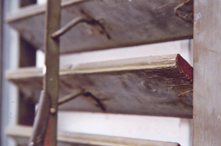 worden de bordjes gekanteld en vastgezet. Daartoe is ieder plankje beweegbaar verbonden met die stang.