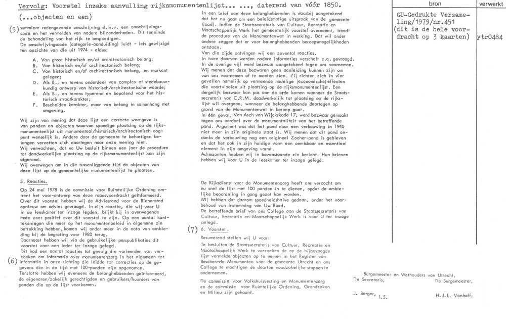 Monumentenlijst Utrecht, Rijks-, voorstel aanvulling 1979