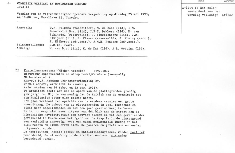 Utrecht - Korte Lauwerstraat 2 e.o. - bouwplan 1992