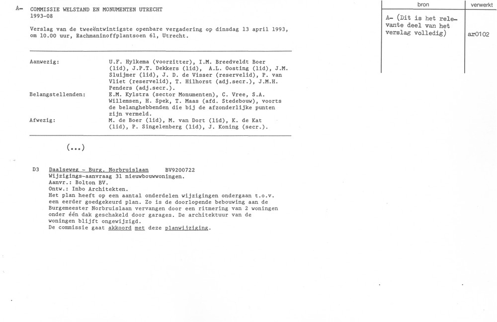 Utrecht - (Burgemeester) Norbruislaan - bouwplan 1993a