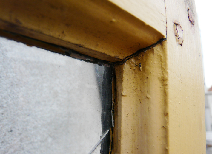 : achtergevel, detail vlieringraampje met ojiefprofiel, vóór de vervanging.