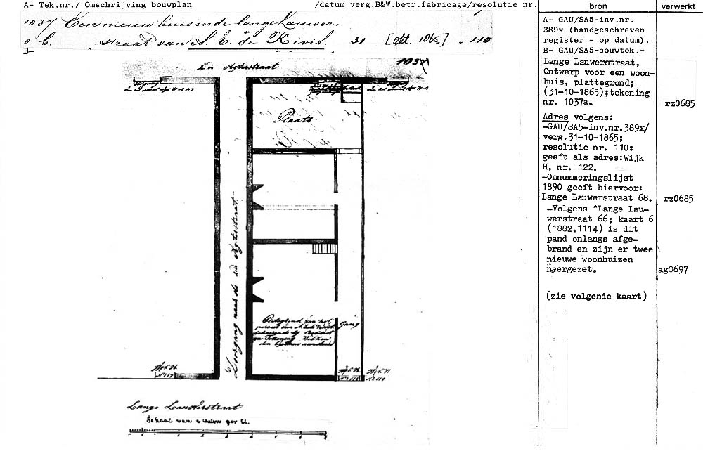 Utrecht - Lange Lauwerstraat 68 - gesloopt 1882