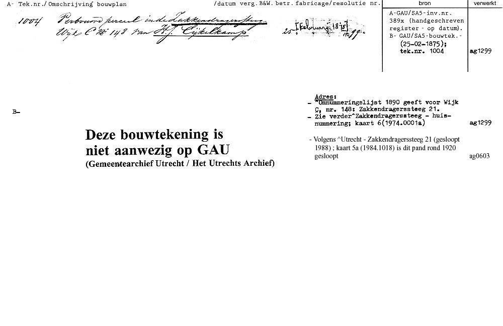 Utrecht - Zakkendragerssteeg 21 - gesloopt