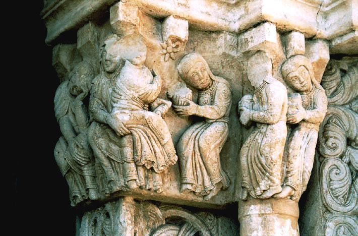 , noordgevel, romaans portaal, kapiteel rechterzijde, bezoek van de Drie Koningen