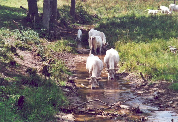 Koeien in beekje tussen Saint-Pierre-le-Moûtier en Decice