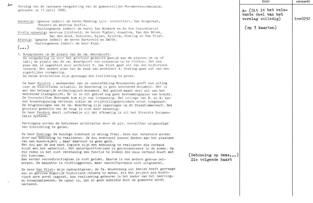 Utrecht - Oudegracht - Weerdpoort - bouwplan 1987