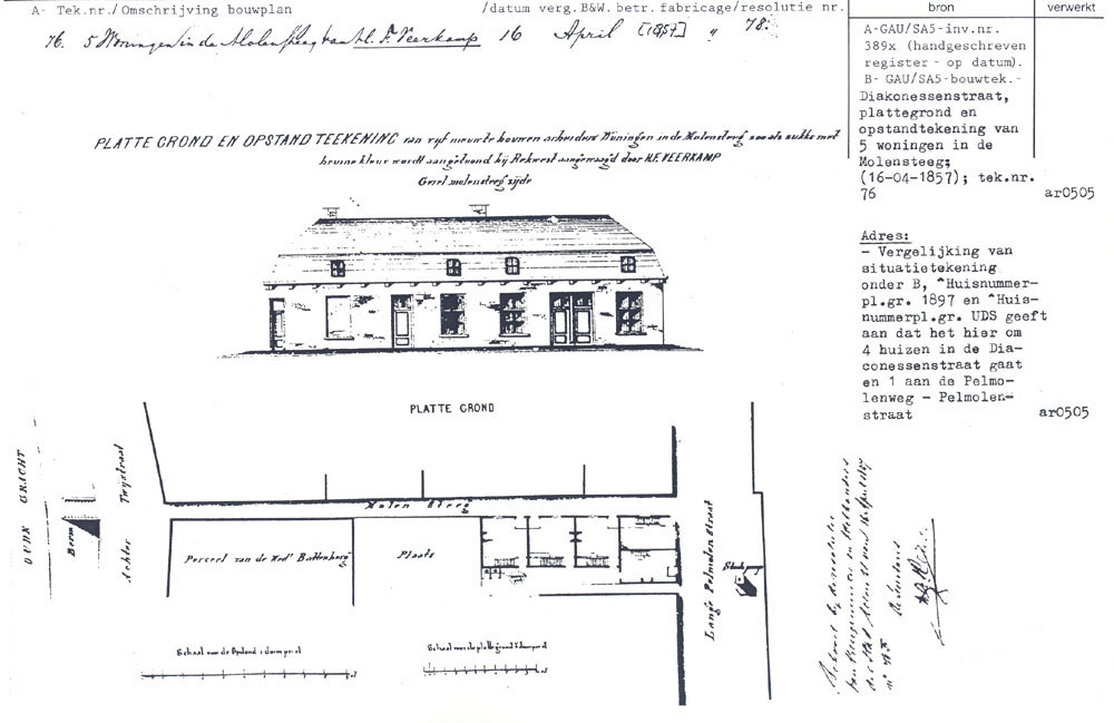 Utrecht - Diaconessenstraat - Molensteeg - bouwplan 1857