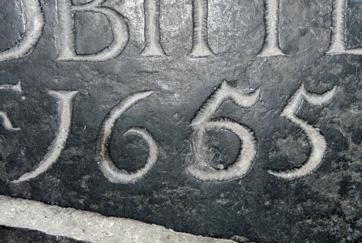 van het minder diepe (voorgekraste?) cijfer 6, waarvan bovenaan nog een punt te zien is