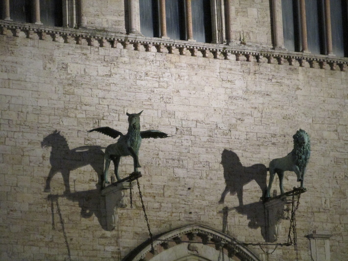 Perugia (I) - Palazzo dei Priori bij nacht.