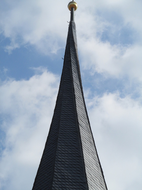 opmerkingen : Sommerach (D) - kath. Pfarrkirche St. Eucherius, kerk met "Julius-Echterturm", onder meer herkenbaar aan de getordeerde spits. De toren van Sommerach is uit 1589, gerestaureerd 1986-1987, de torenhaan werd toen vervangen door een wijnkelk als reclame voor de wijnbouw alhier (mededeling, 22-08-2013, van dr Elmar Hochholzer uit Sommerich).