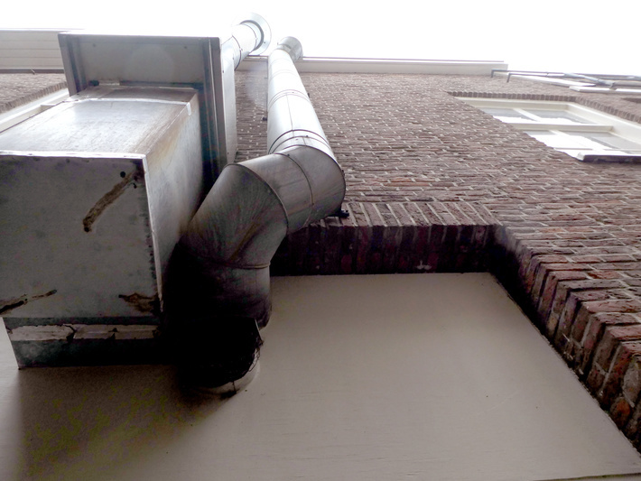 Een gedeelte van de zijgevel van Bakkerstraat 18.