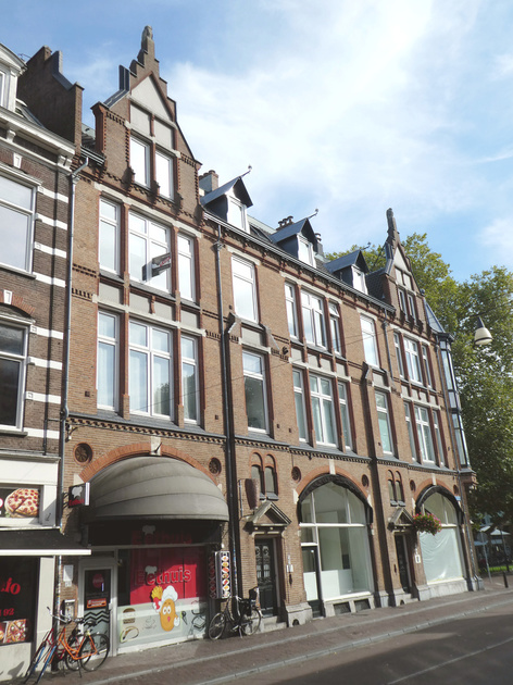 Complex uit 1895 met 3 winkels en 2 bovenwoningen. De huisnummers zijn van links naar rechts:
