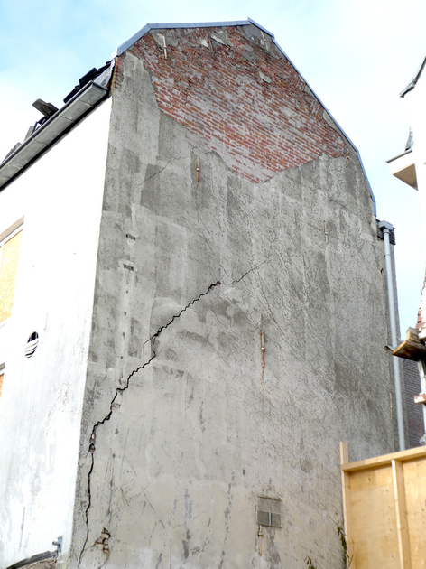 Bekijk daarom ook de oudere foto's: 2010: interieur: de eerste verdieping heeft dan al zo'n scheur, en detail.