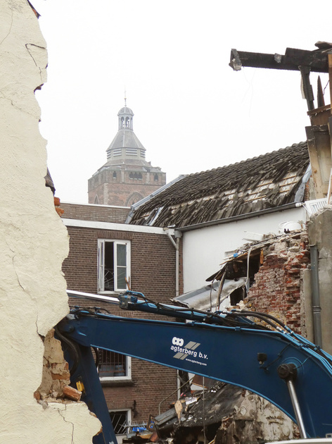 . Net onder de blauwe arm van de shovel is de helft van de linker kaarsnis van die muur te zien.